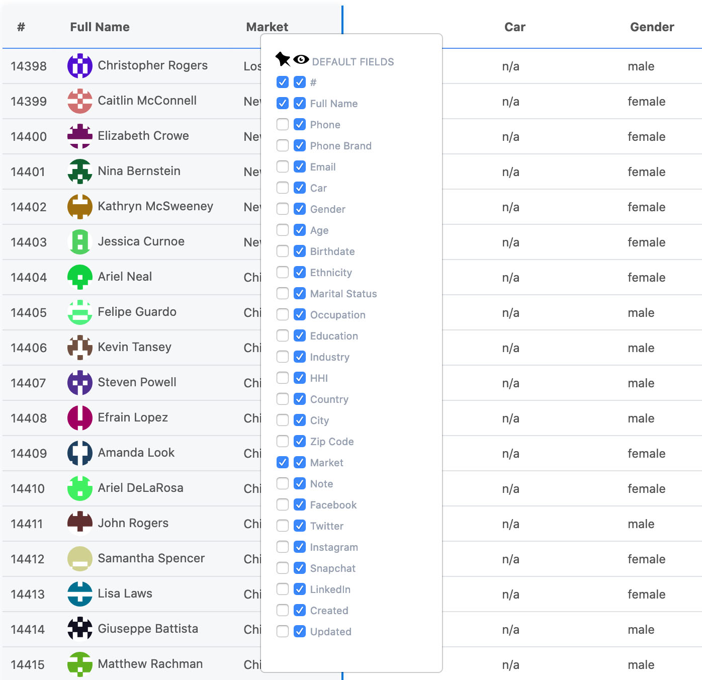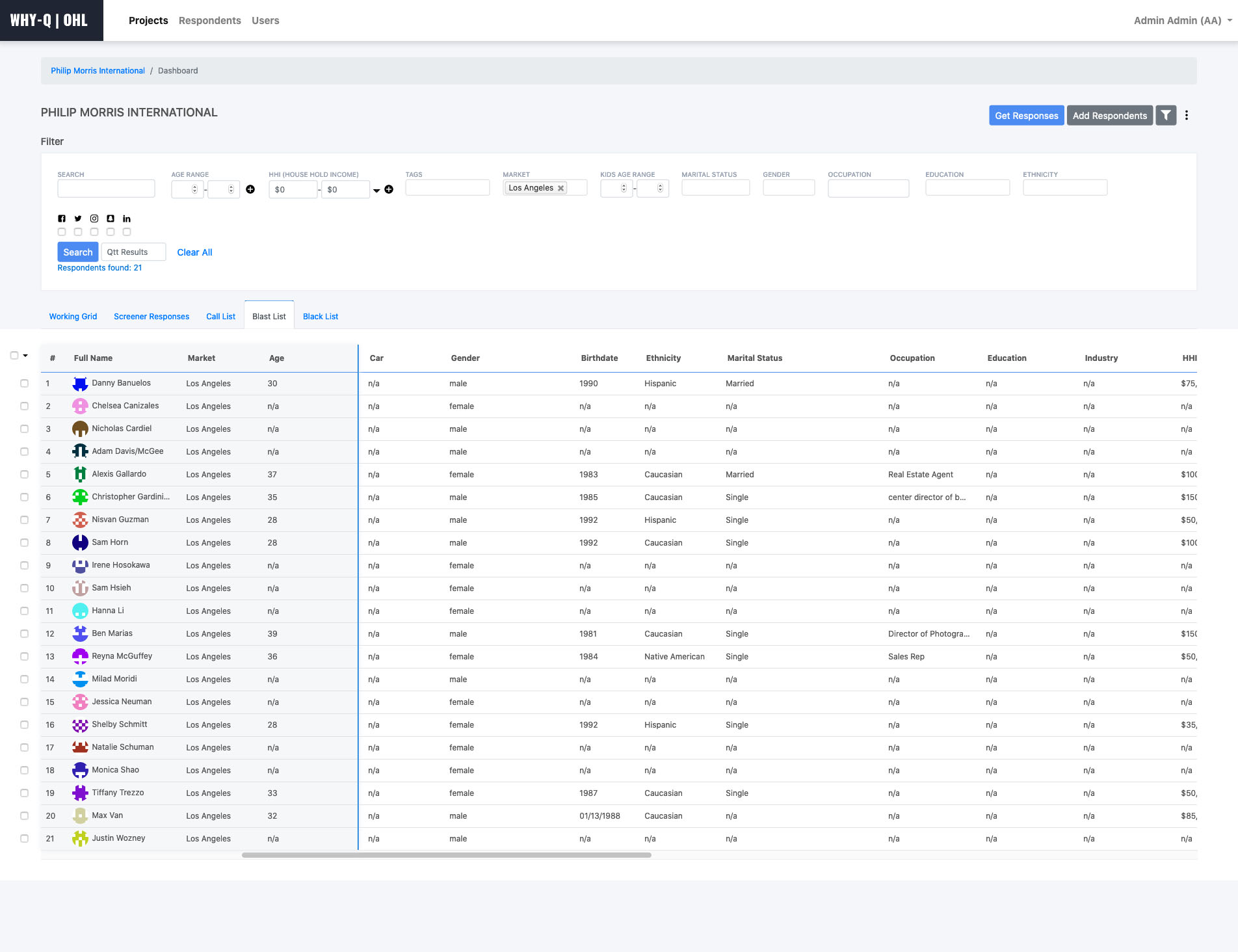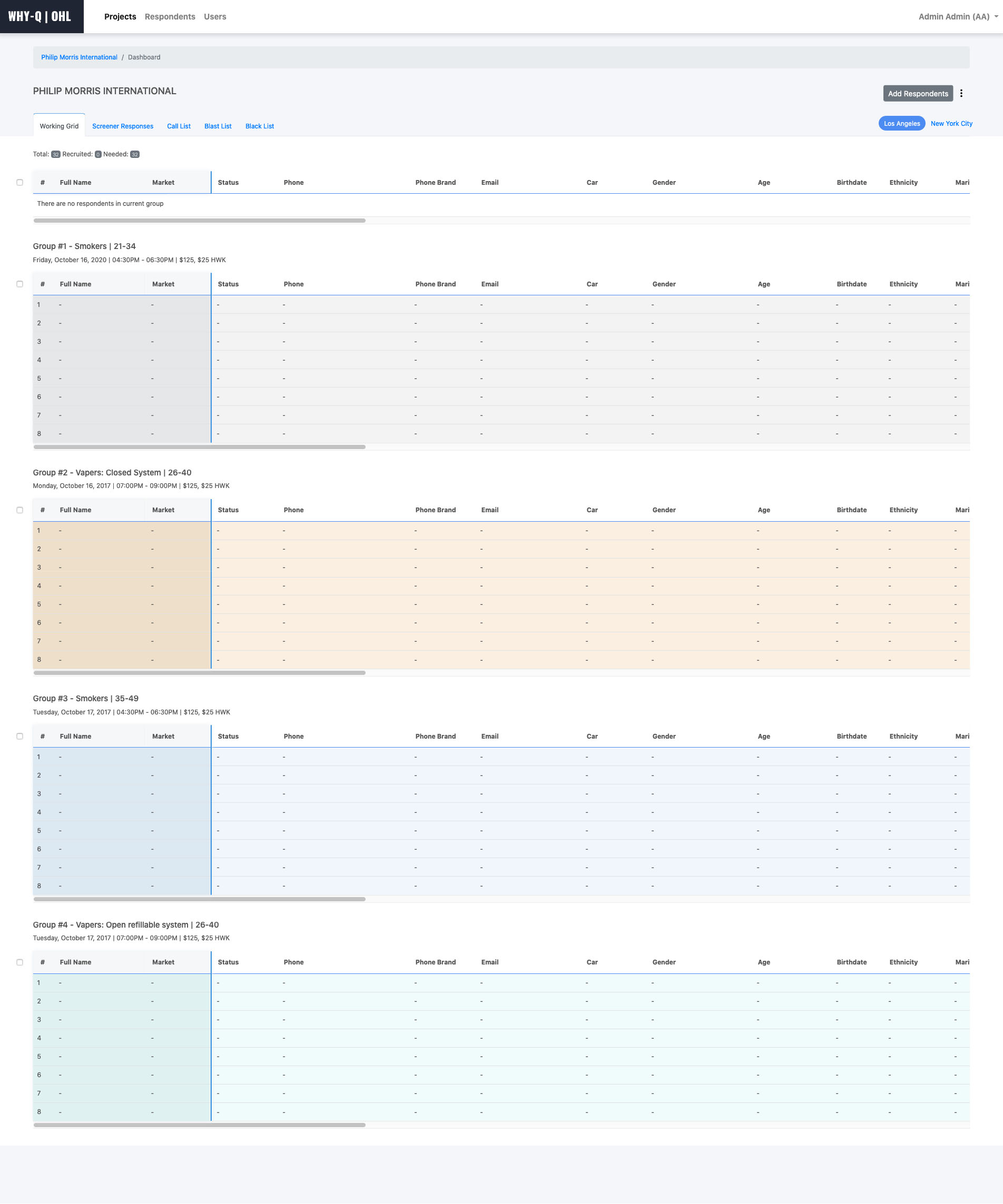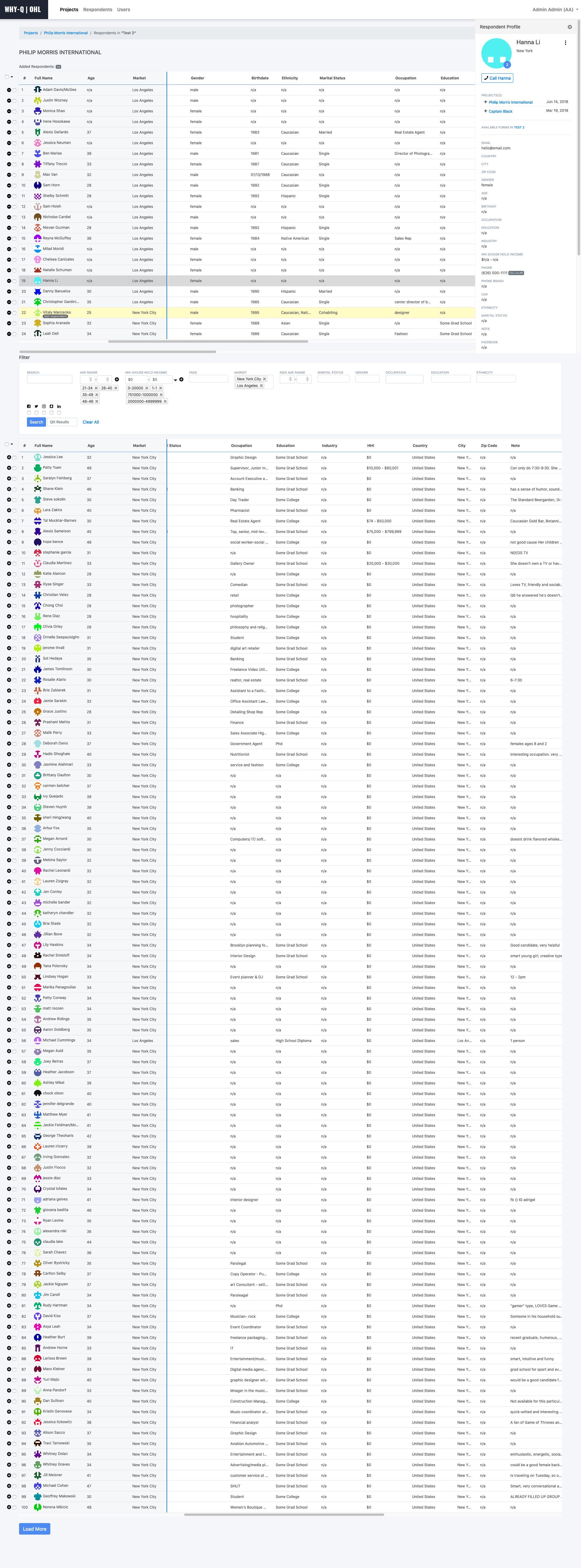 The data is displayed in responsive spreadsheets. It’s possible to edit the data right in the table cell. The system offer a convenient way to control user lists and group respondents by different responses received from them.